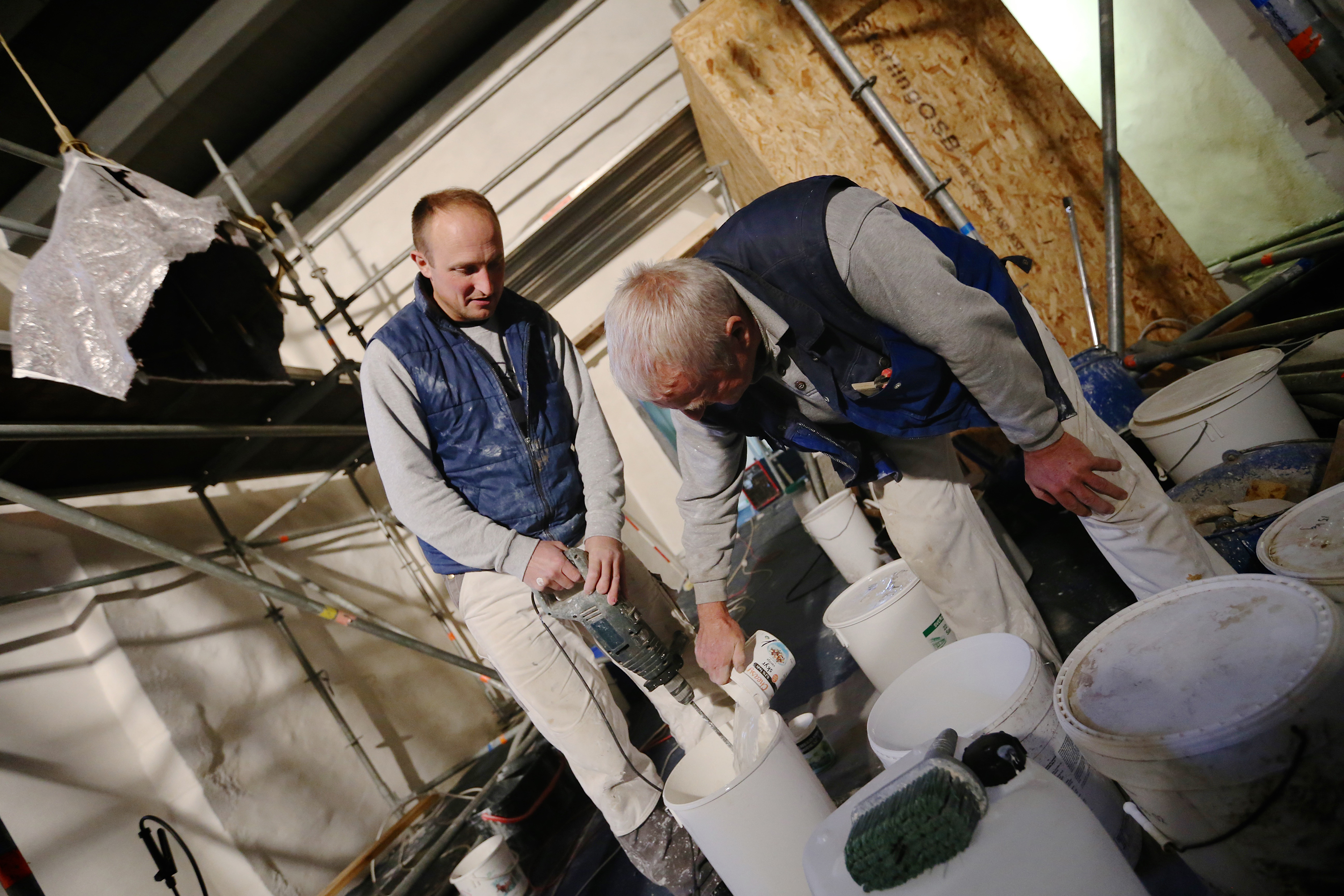 Selve alteret, orglet og døbefond skal også renses, men blev stående i kirken. Hermetisk indpakket i store trækasser, så de ikke lider yderligere overlast, mens de erfarne kirkemurere fra Husby Murerforretning lapper revner i murværket og kalker væggene fire gange. Varmeblæsere forsøger imens at holde luftfugtigheden nede.