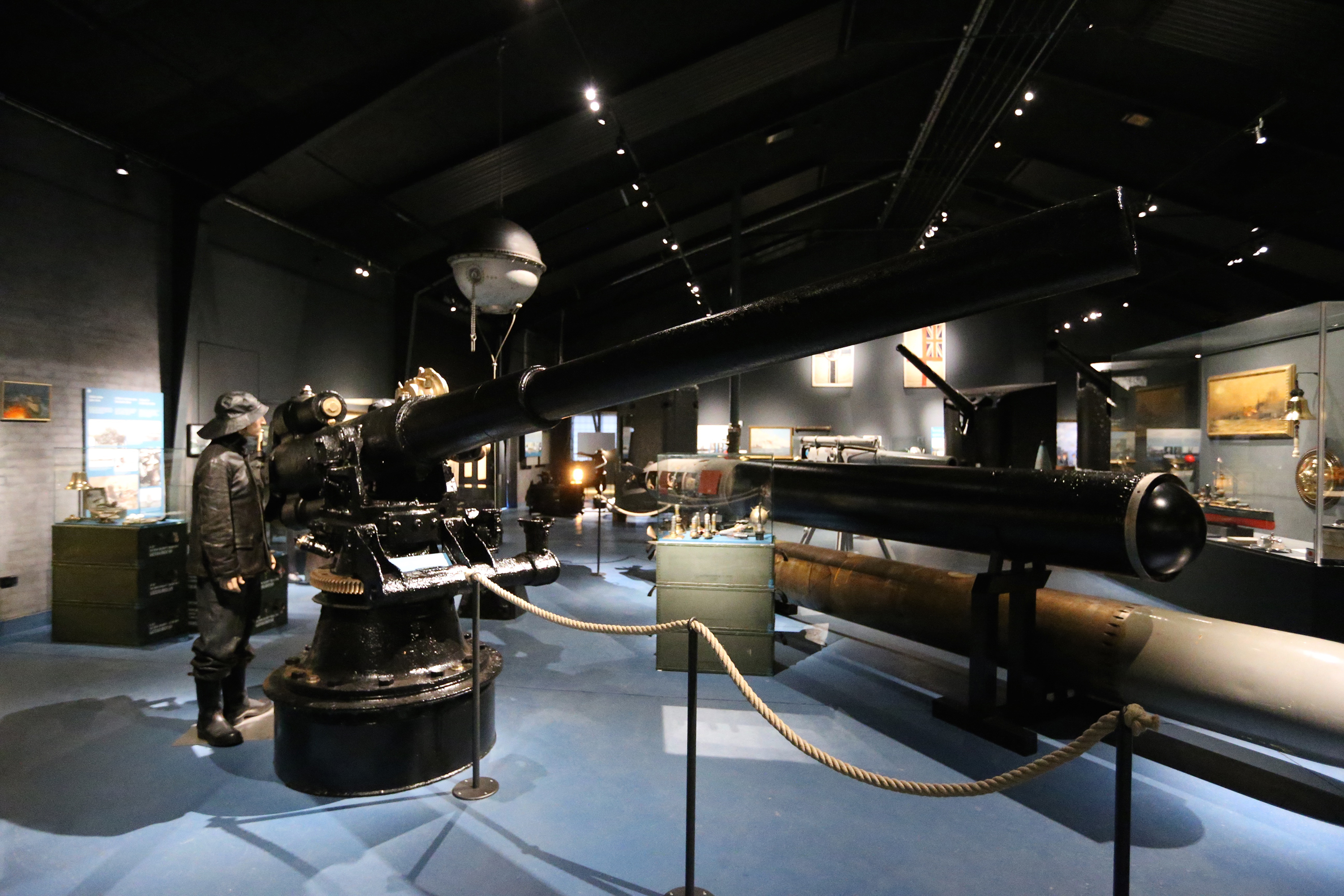 Væggene er fyldt med malerier, sort-hvide foto, avisforsider, flag og korte tekster, der forklarer de mange store og små stumper fra søslagene. Det er notitser fra verdenshistorien, som helt enkelt dokumenterer, at det på ingen måde er tilfældige rester fra forgangne tider eller kopiprodukter, der er udstillet på eller ved de ægte ammunitionskasser, der gennem hele museet er benyttet som skillevægge.