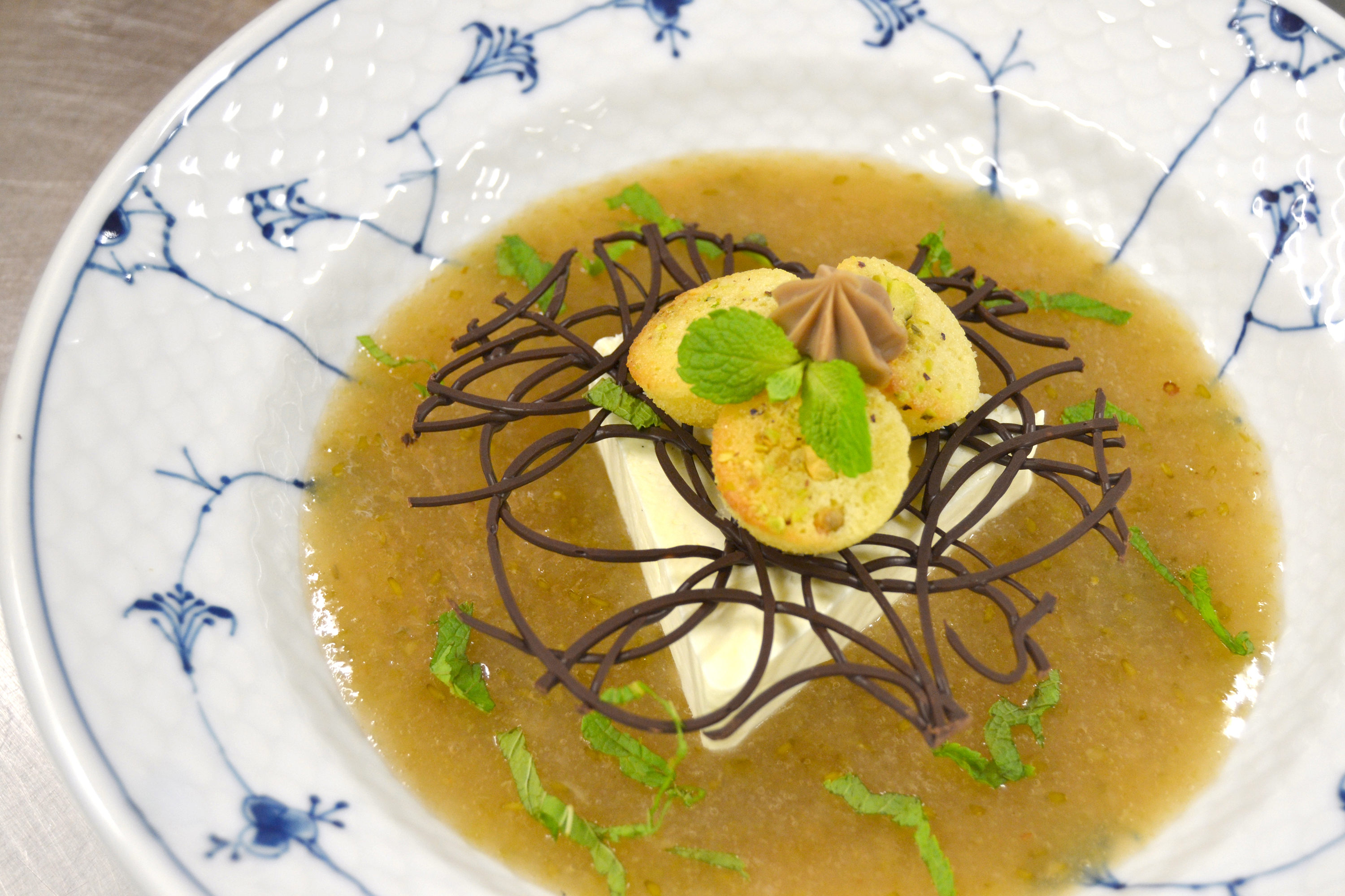 Årets Dessert 2016. Slutnominerede til titlen 'Årets Dessert' af Den danske Spiseguide: Restauranterne Geranium (***) og Studio i København, Søllerød Kro (*), 'Molen' i Nex˘ og Westergaards Hotel, Videbæk. Vinderen kåres 30. oktober på AROS i Aarhus.