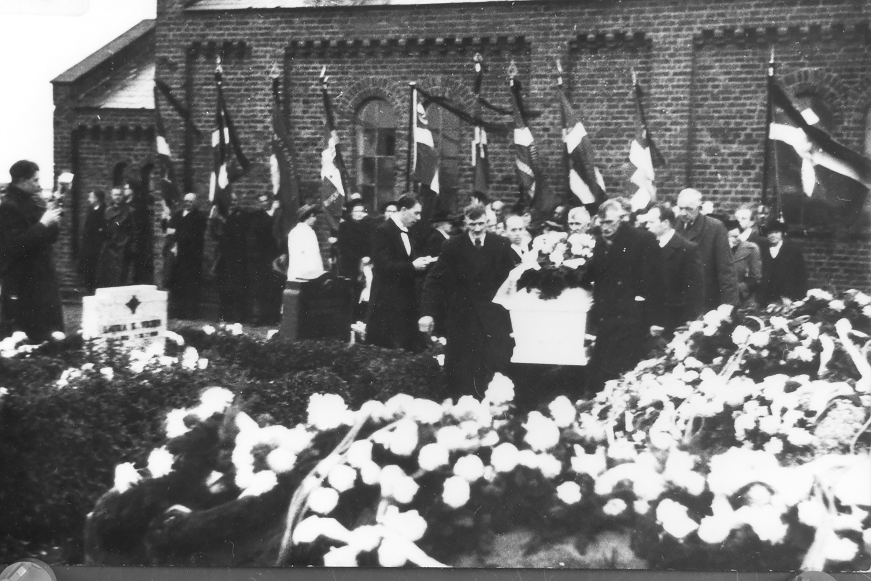 Disse kranse var placeret ved gravene, da der ikke var plads i kirken. Pastor Huus holdt prædikenen og foretog jordpåkastelsen, hvorefter der blev afholdt to minutters stilhed til minde om de omkomne redningsmænd.