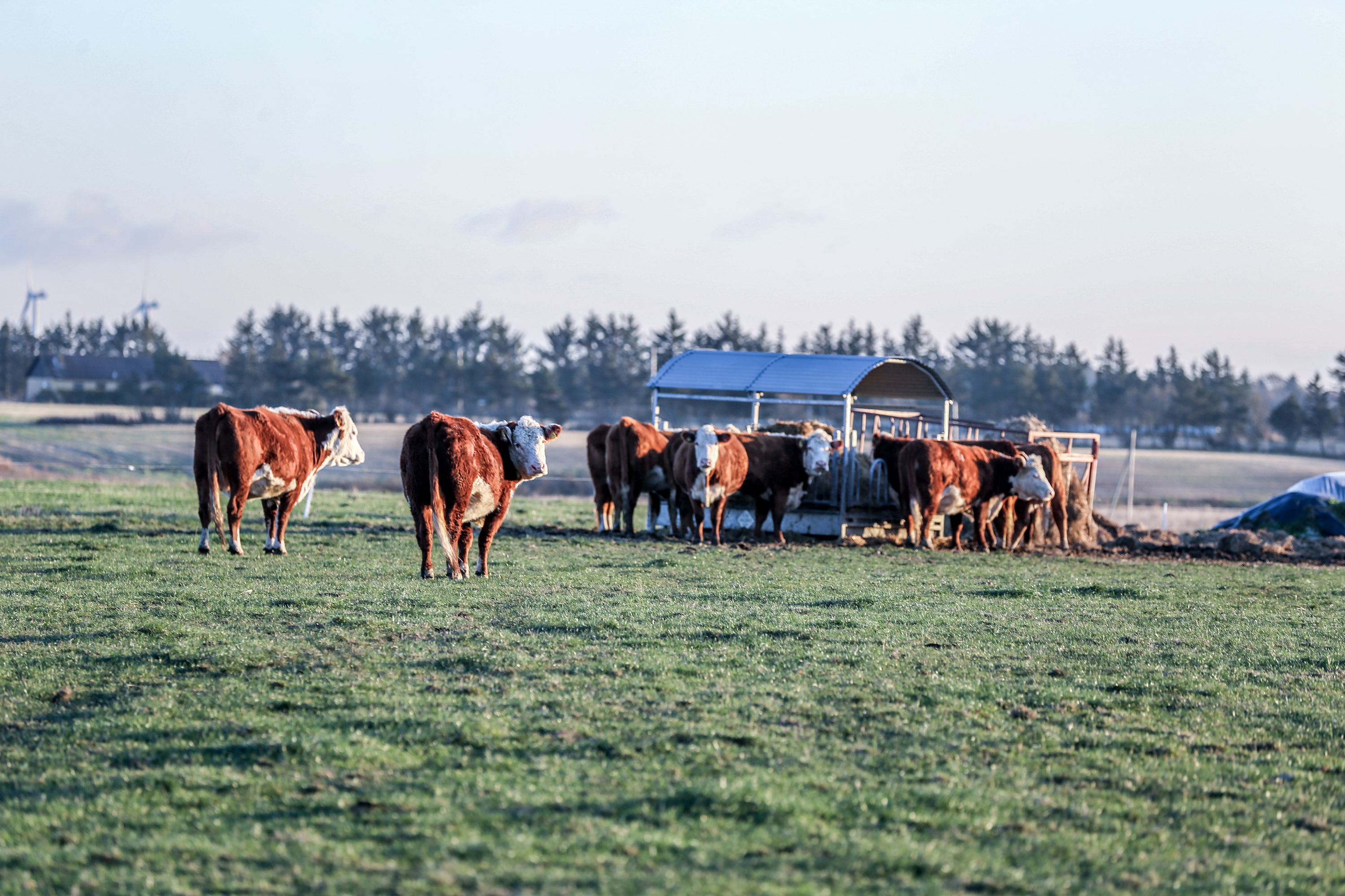 Som noget nyt er han også begyndt at bruge sin jyske tyr til hereford-kvierne. Krydsningskalvene er lidt mindre, hvilket letter kviernes første kælvning: