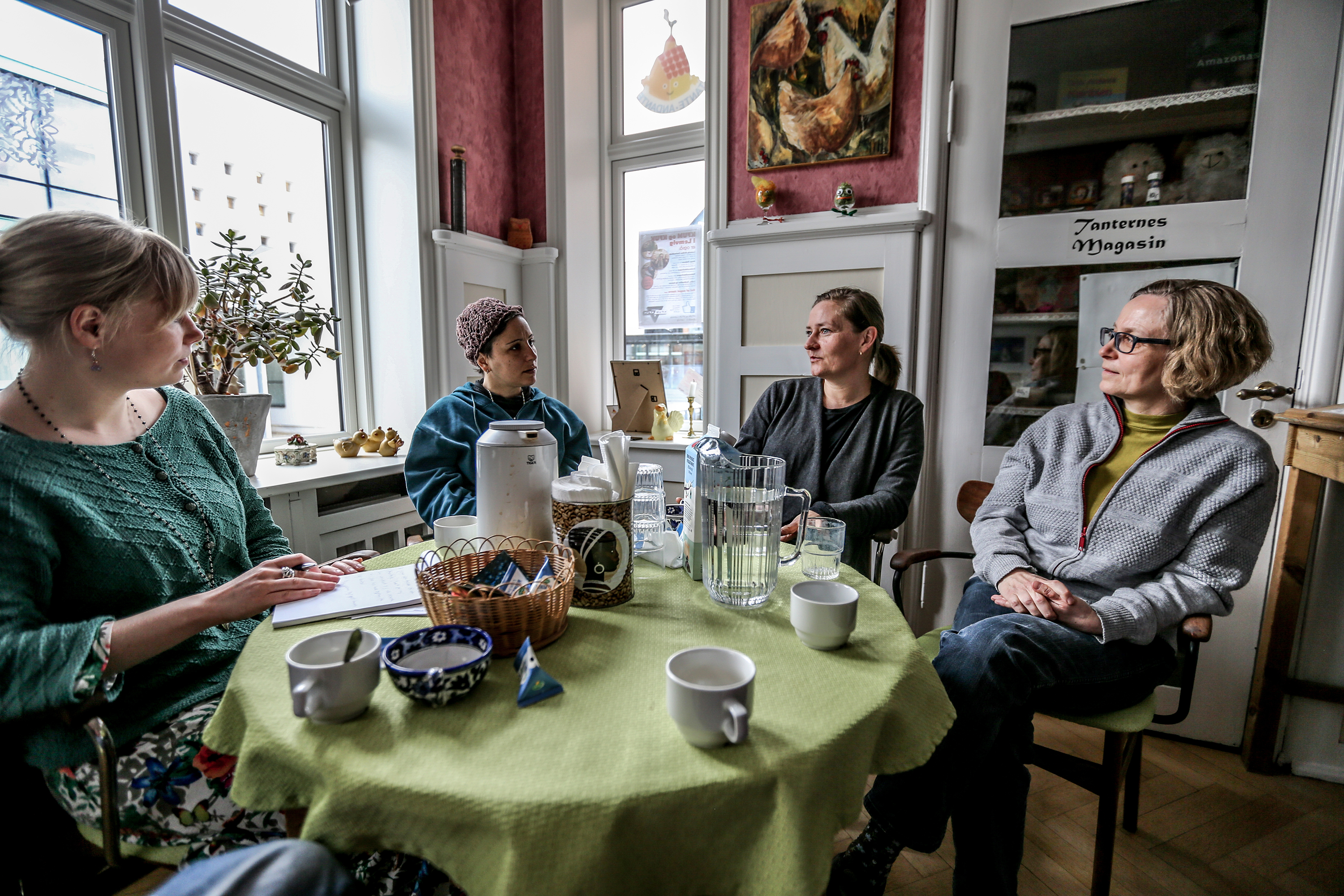 "Men den arabiske måde at lave kaffe på er altså alt for stærk til mig", siger hun bebrejdende i spøg.