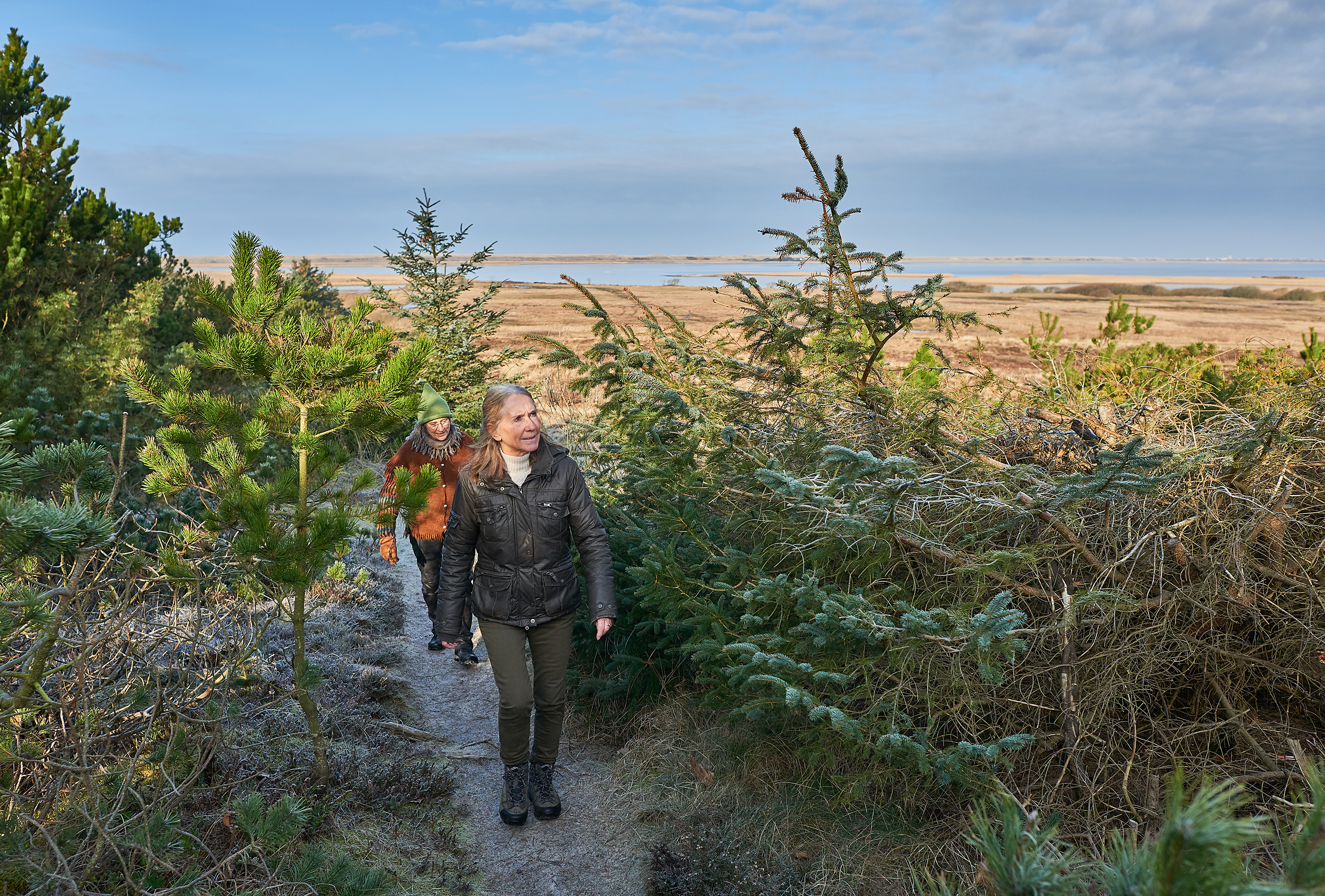 Vibeke Albinus er frivillig ved Nissum Fjord Net-værket. Derudover har hun og hendes mand boet midt i Husby Klitplantage i over 35 år, og hun er desuden flittig vandrer, rytter og plantenørd. På grund af sit store kendskab til området blev hun sammen med lokalkendte Merete Krøjgaard, der er turleder i Dansk Vandrelaug Ringkøbing, bedt om at udpege en passende rute, som levede op til de mange krav, der følger med, hvis man vil certificeres under det tyske vandreinstitut.