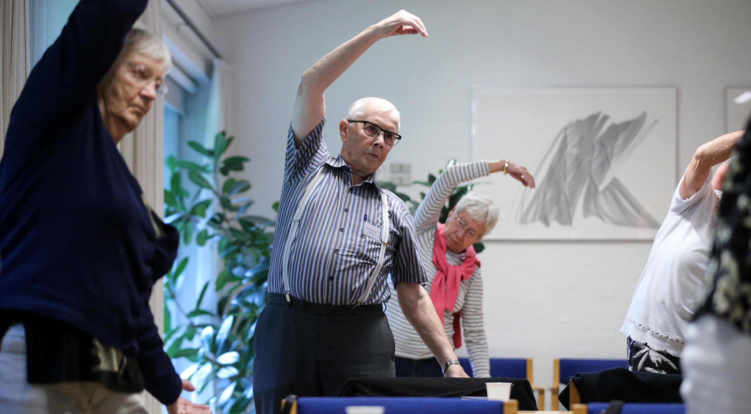 Der synges naturligvis også fra Højskolesangbogen, og det hele sluttes af med en gang fælles morgengymnastik for dem, der har lyst at være med. Det har de fleste, for det er en meget aktiv målgruppe, som kommer på højskolen.