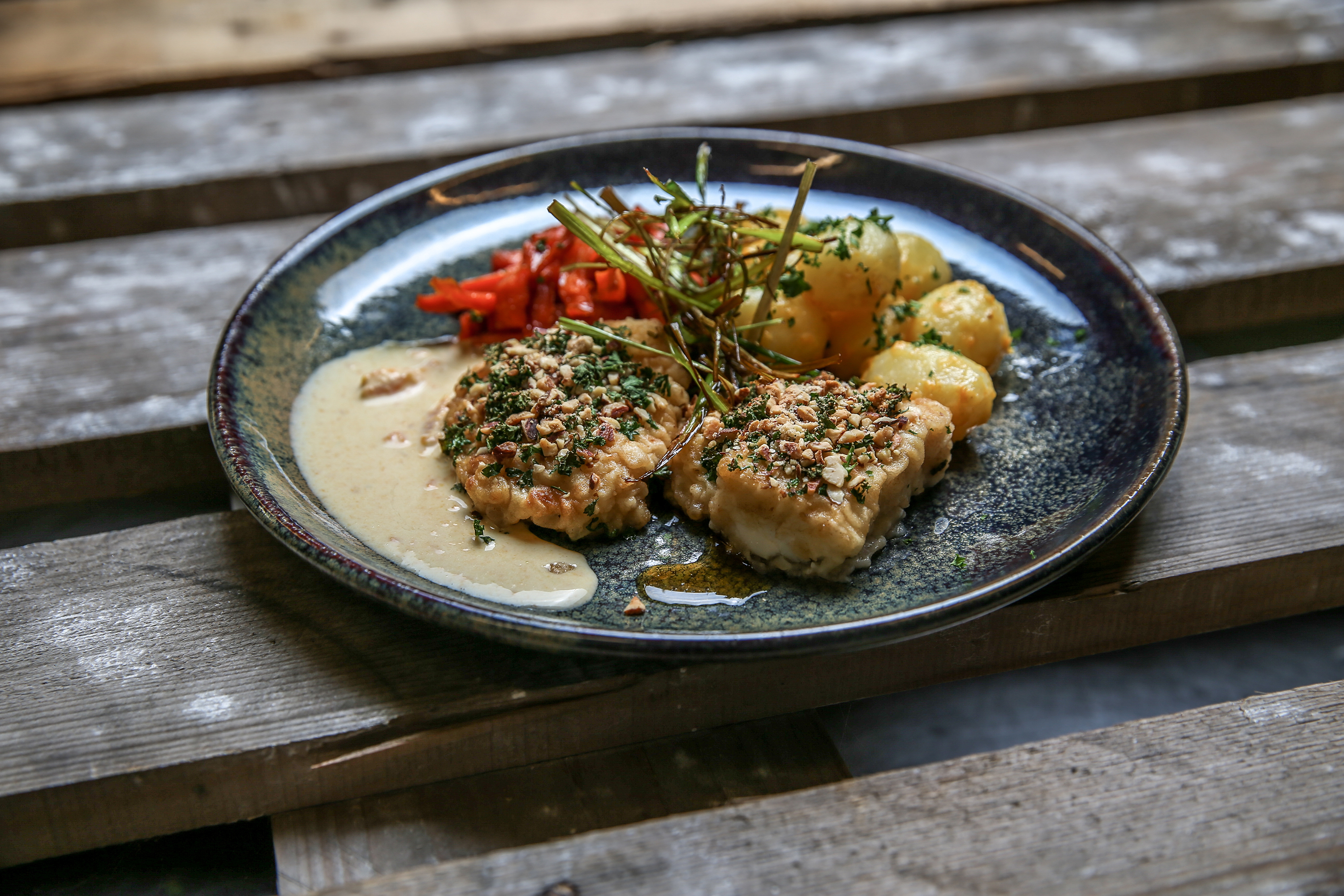 Server evt. fisken med smørsauteret kål og små smørstegte kartofler til.