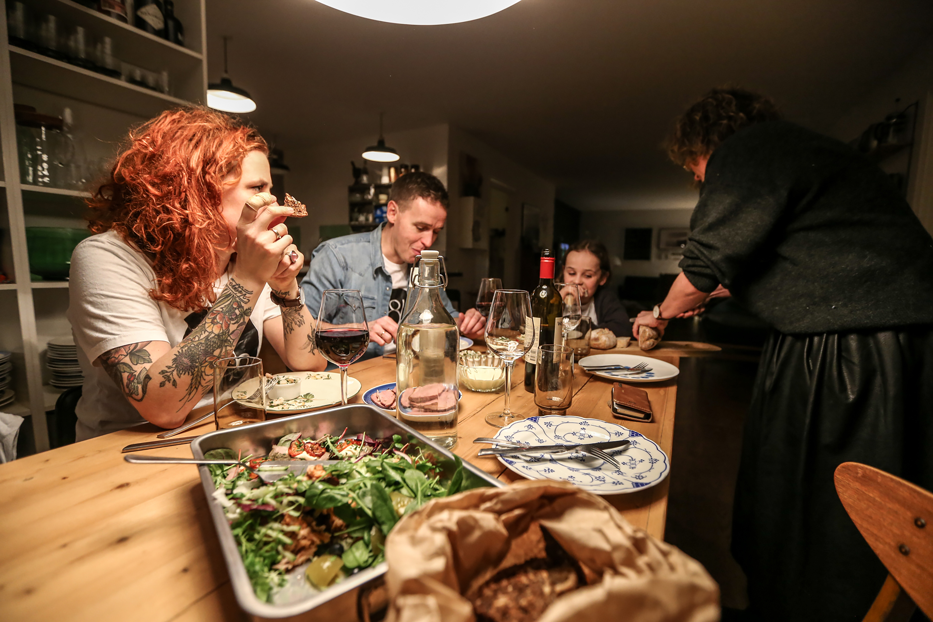 Jesper (Krabbe, kok med fortid blandt Henne Kirkeby Kros Michelinstjerner, red.) leverede for eksempel den ondeste chili con carne til Sko/Torp. En ordentlig portion. Det, som ikke blev spist i aftenens løb, pakkede min søster i poser, så folk kunne købe med hjem til fryseren. Vesterhavsbogen som Christina (Lund, journalist) tilrettelagde for Lindhardt og Ringhof er 18b’s blomsterbuket til de optrædende. Og Mads (Krabbe, fotograf og bror til Jesper) er vores husfotograf”.