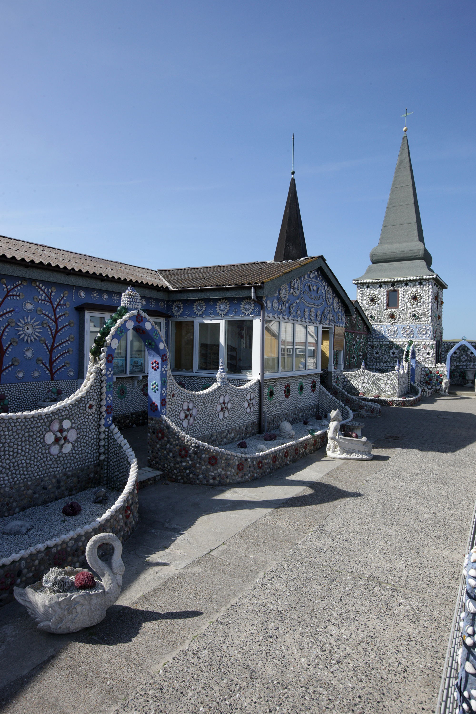 Og så har han gået det ydre murværks snirklede og blomstrende mønster efter for manglende sneglehuse og muslingeskaller. Et arbejde, som vestenvind og sandfygning fra klitterne i baghaven garanterer, aldrig hører op.
