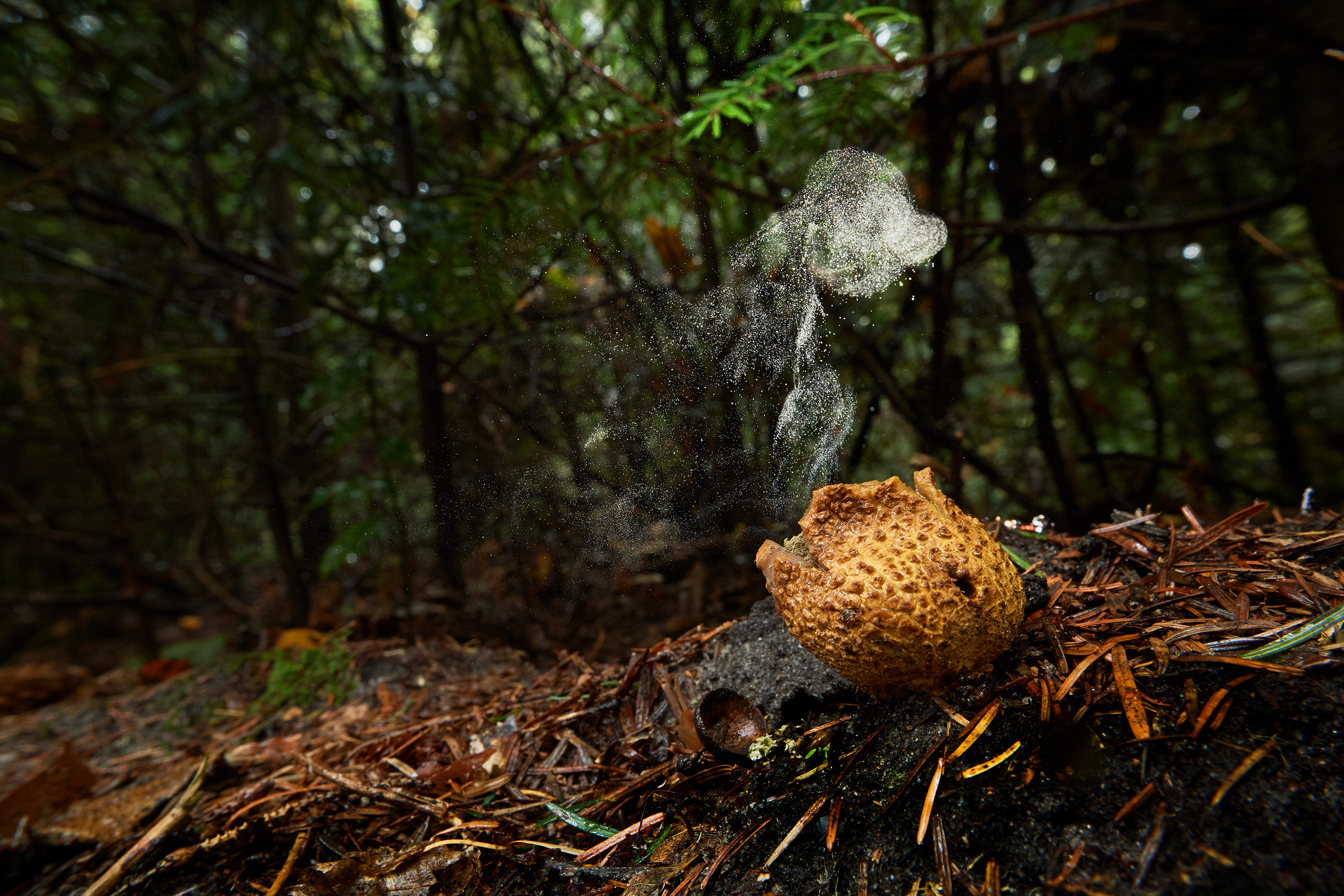 Udover de tre store grupper af svampe, vi allerede har set på turen: Rørhatte, lamelsvampe og poresvampe, kender de fleste også støvboldene.