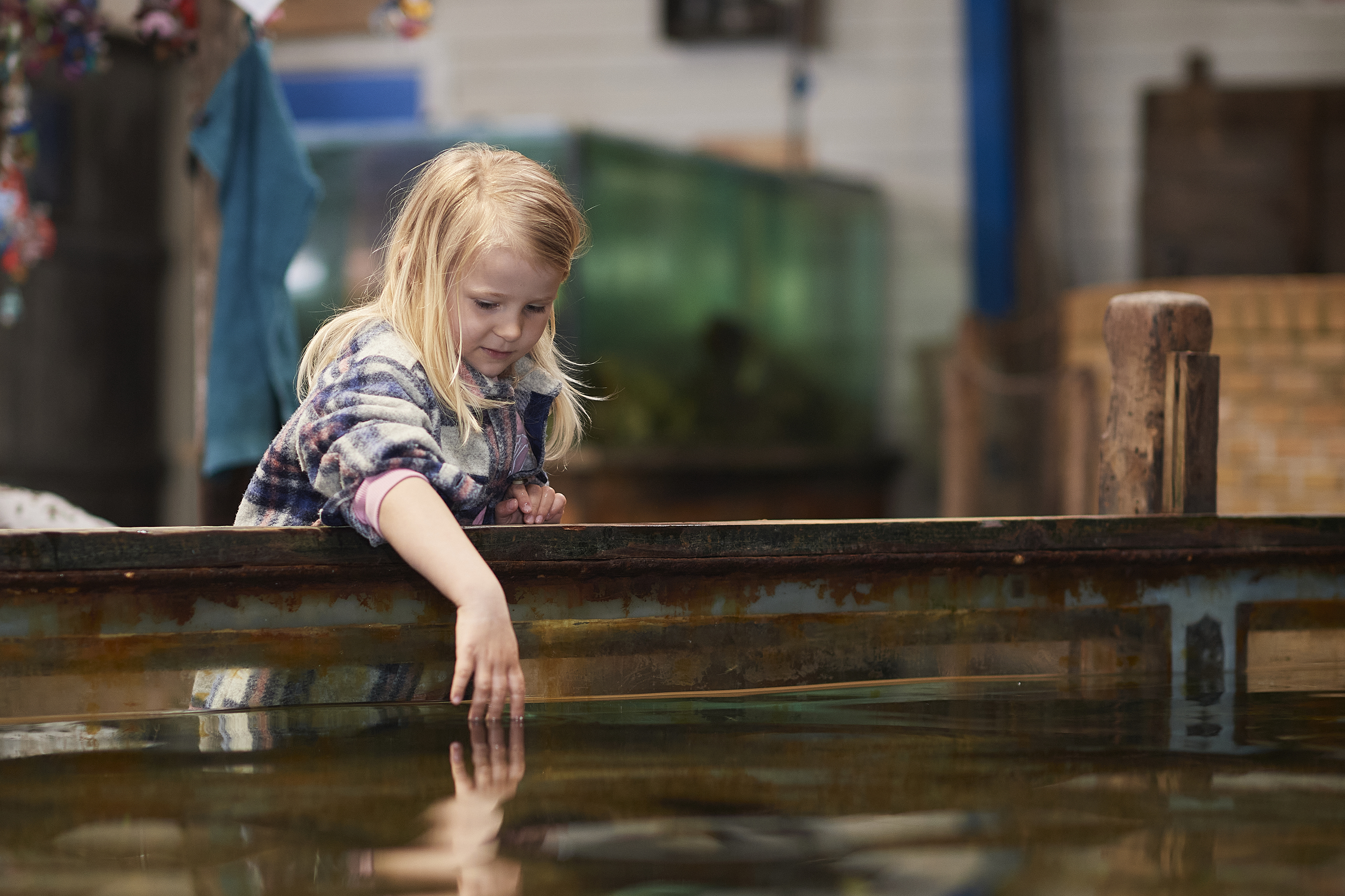 Vi skaffede gammelt moletræ, bådebroer og hyttefade fra havnen til inventar i udstillingen. Dengang lavede vi tingene selv, skilte alt ad, når det skulle repareres. Kuglelejer i en motor til pumperne, brugte ruder fra gamle vaskemaskiner som kighuller til akvarier, og vi var generelt altid på jagt efter brugte dele. Alt ordnede vi selv. I dag er vi omkring 30 ansatte, og tid er en langt mere afgørende faktor. Vi har aldrig god tid, og selvom der er ansatte, som kan lave alt, sender vi nu ting ud af huset til reparation – eller køber en ny dørklokke, hvis den går i stykker.