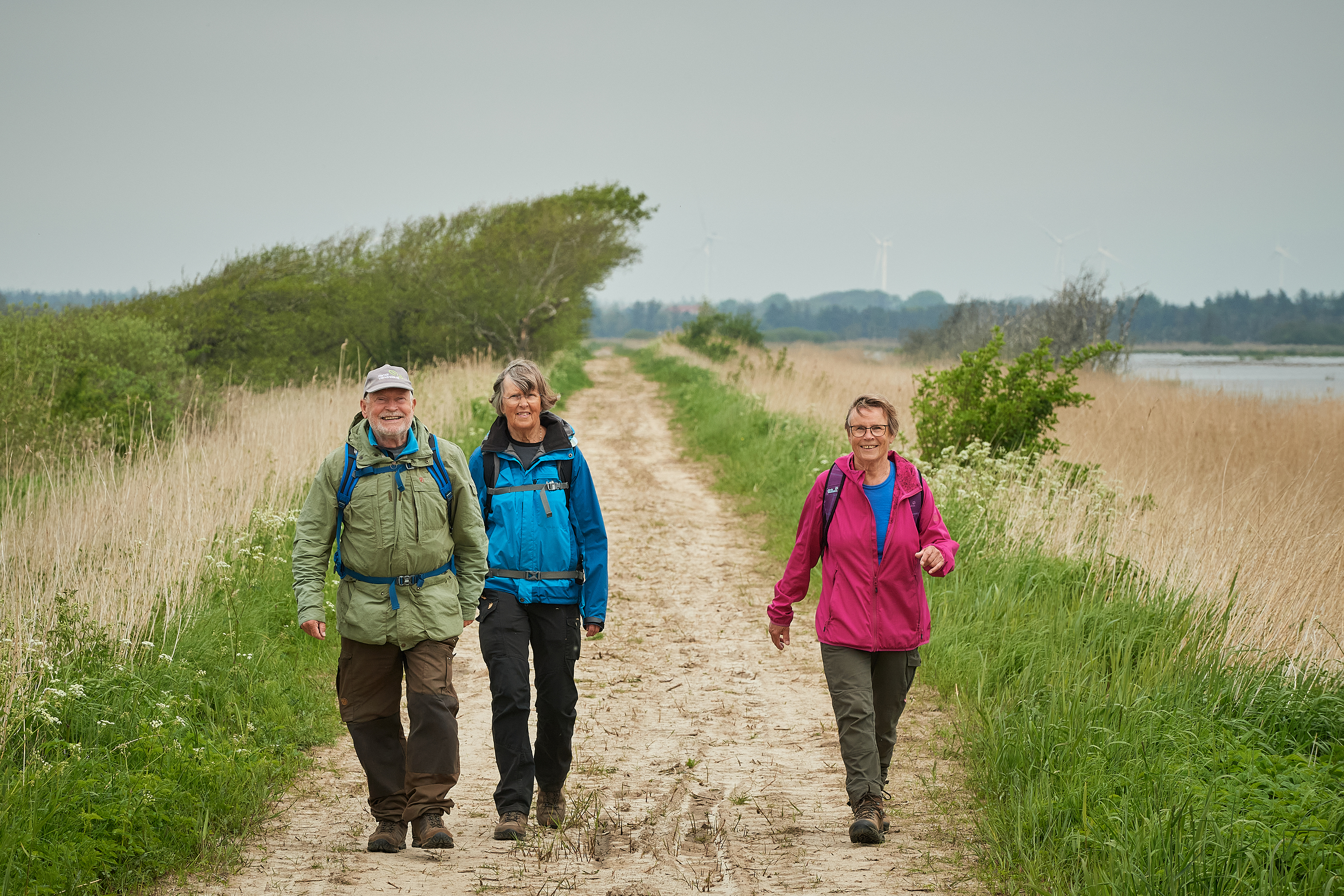 På stien ved Kytterup møder vi tre, der netop har været på vandretur for at tage ruten over den helt nye bro. Det er Marie Andersen, Merete Krøjgaard og Henning Frederiksen fra Husby. De er alle med i Dansk Vandrelaug og går mange gode ruter i hele landet i det regi. Som glade vandrere har de selvfølgelig også på eget initiativ nydt gåture forskellige steder på ruten langs Nissum Fjord, og de er enige om, at det er nogle dejlige ture, man kan gå her. Ture der byder på lidt for alle interesser.