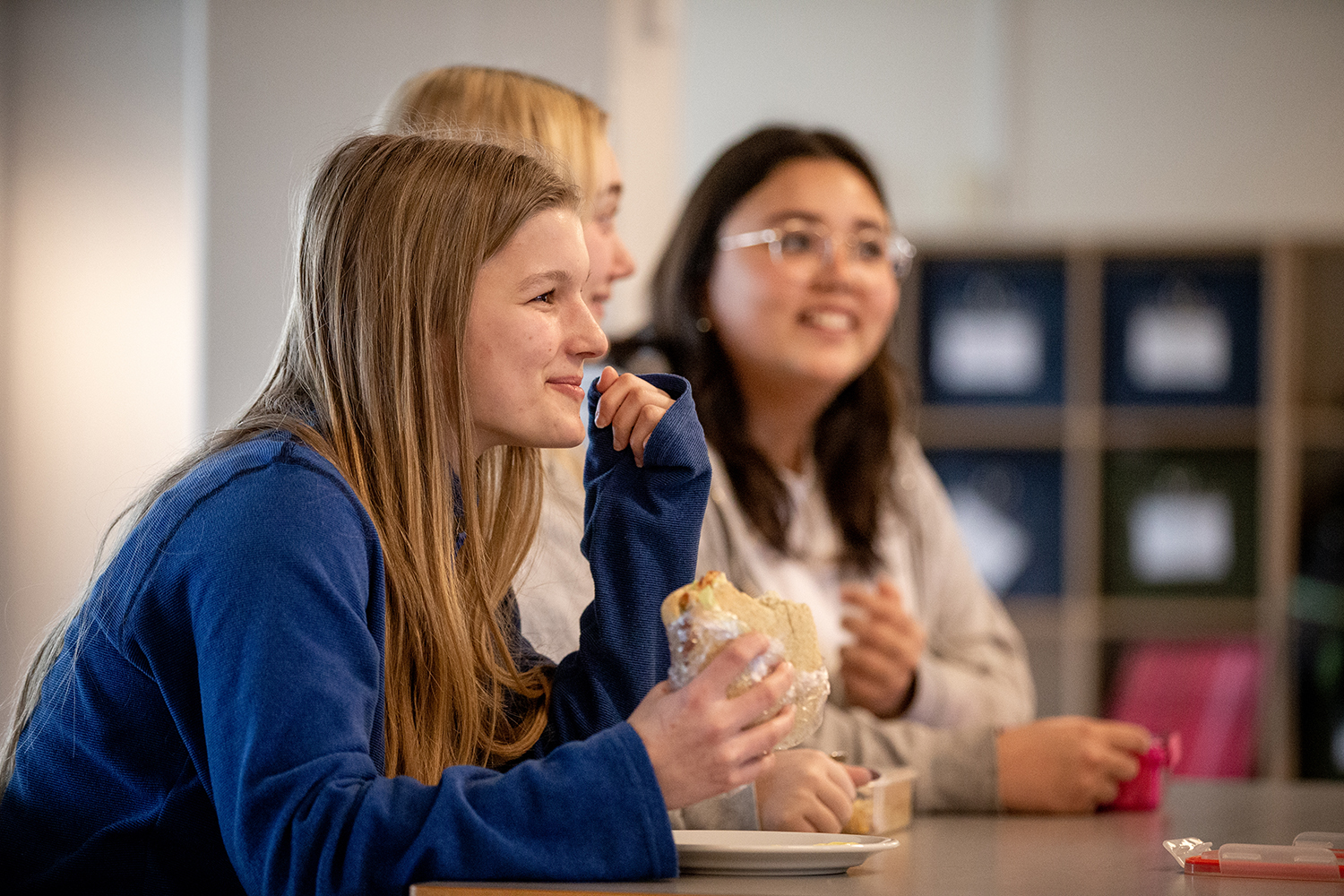 ”Der var mange bekymringer, om vores elever nu kunne finde sig til rette med at være de yngste her i stedet for de ældste i folkeskolen. Om de ville blive små og klemt blandt store, halvvoksne 3.g’er. Det kunne vi fuldstændig have sparet os! 10. klasse føler sig lige så hjemme i kantinen og resten af huset som alle andre. De deltager i morgensamling, fællesarrangementer og fester – og de elsker det!”, siger Ilse Marie Venneberg.