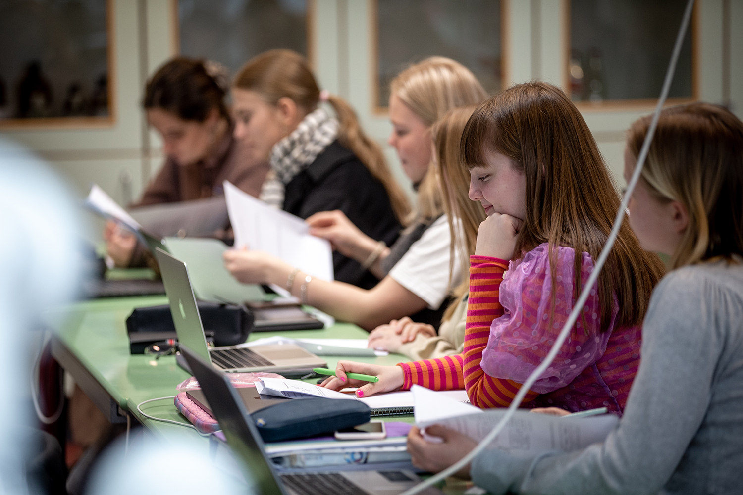”I folkeskolen hører man ikke andet end, hvor svært gymnasiet er, og hvor meget man skal tage sig sammen. Så ser man jo bare tre år foran sig, hvor man ikke laver andet end lektier. Men når man så er her og går på gangene, ser folk hygge sig med gruppearbejde og stadig have et liv, bliver det mindre skræmmende. Jeg elsker det sociale liv på gym – og fagligt er det altså ikke nær så svært, som de skræmmer en med,” siger Thea Rose Jensen.