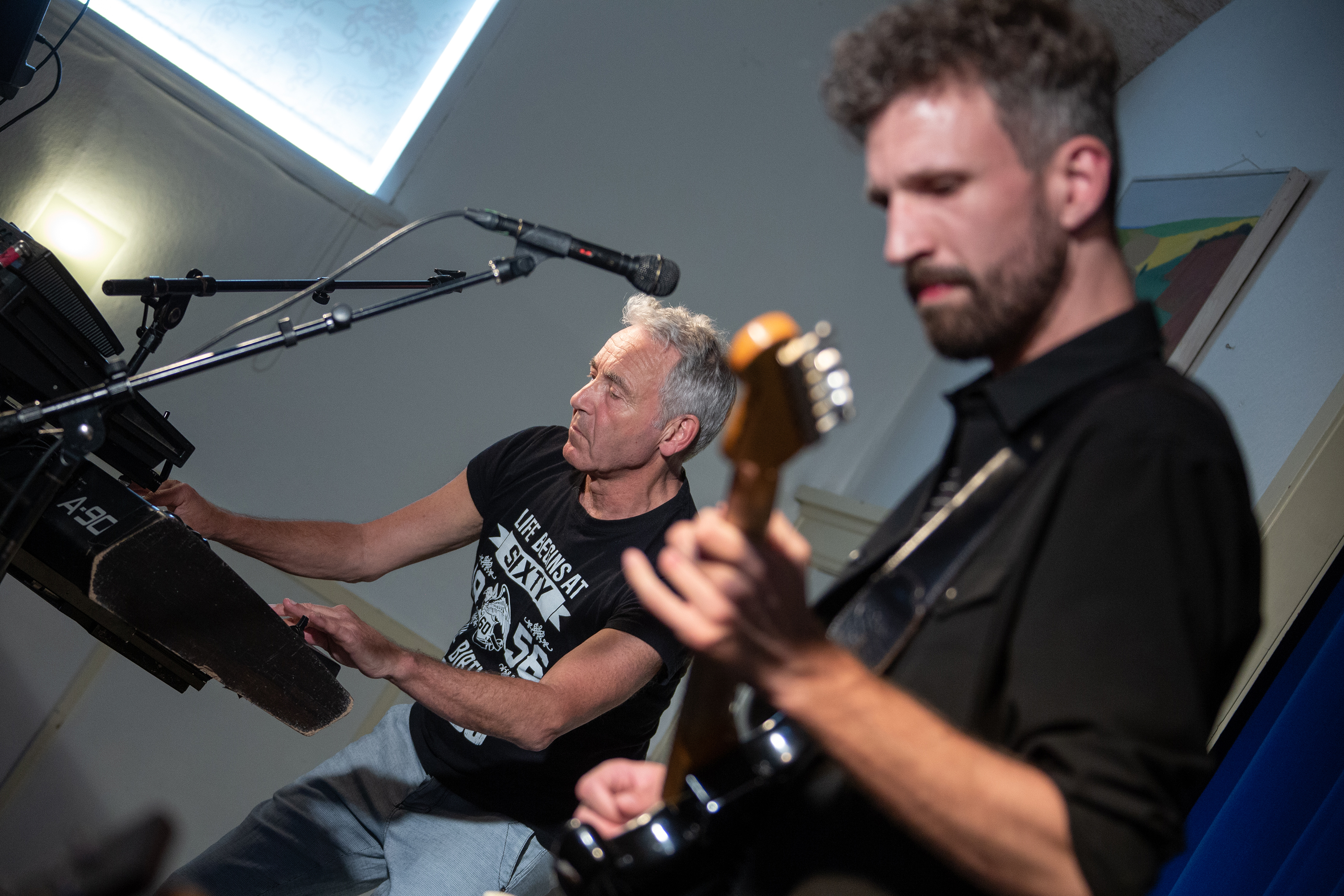 Vi sidder og snakker forud fra aftenens koncert med Kristian Lilholt og Frede Panduro. Kapaciteten i salen er 100 personer, der placeres ved runde borde, så man kan spise og hygge sig sammen inden koncerten. Alle pladser bliver besat, men så er 100 jo heller ikke et højere tal… Kristian Lilholt bekræfter, at tiden med og efter corona har ændret koncert-billedet. Det er de mange – og ofte små – arrangementer, der giver smør på brødet – og så må man som kunstner bare knokle på og gennemføre flere koncerter end tidligere.