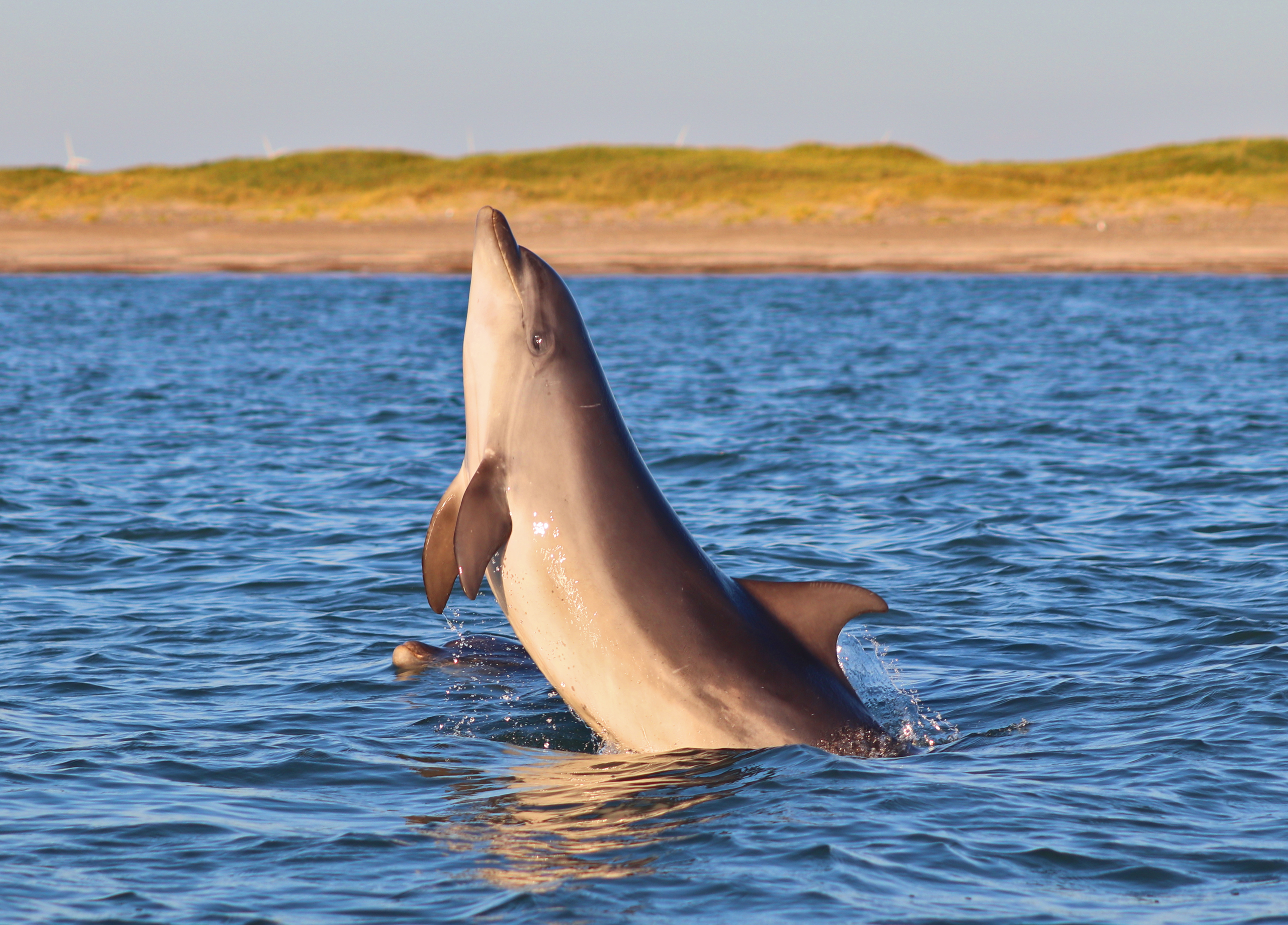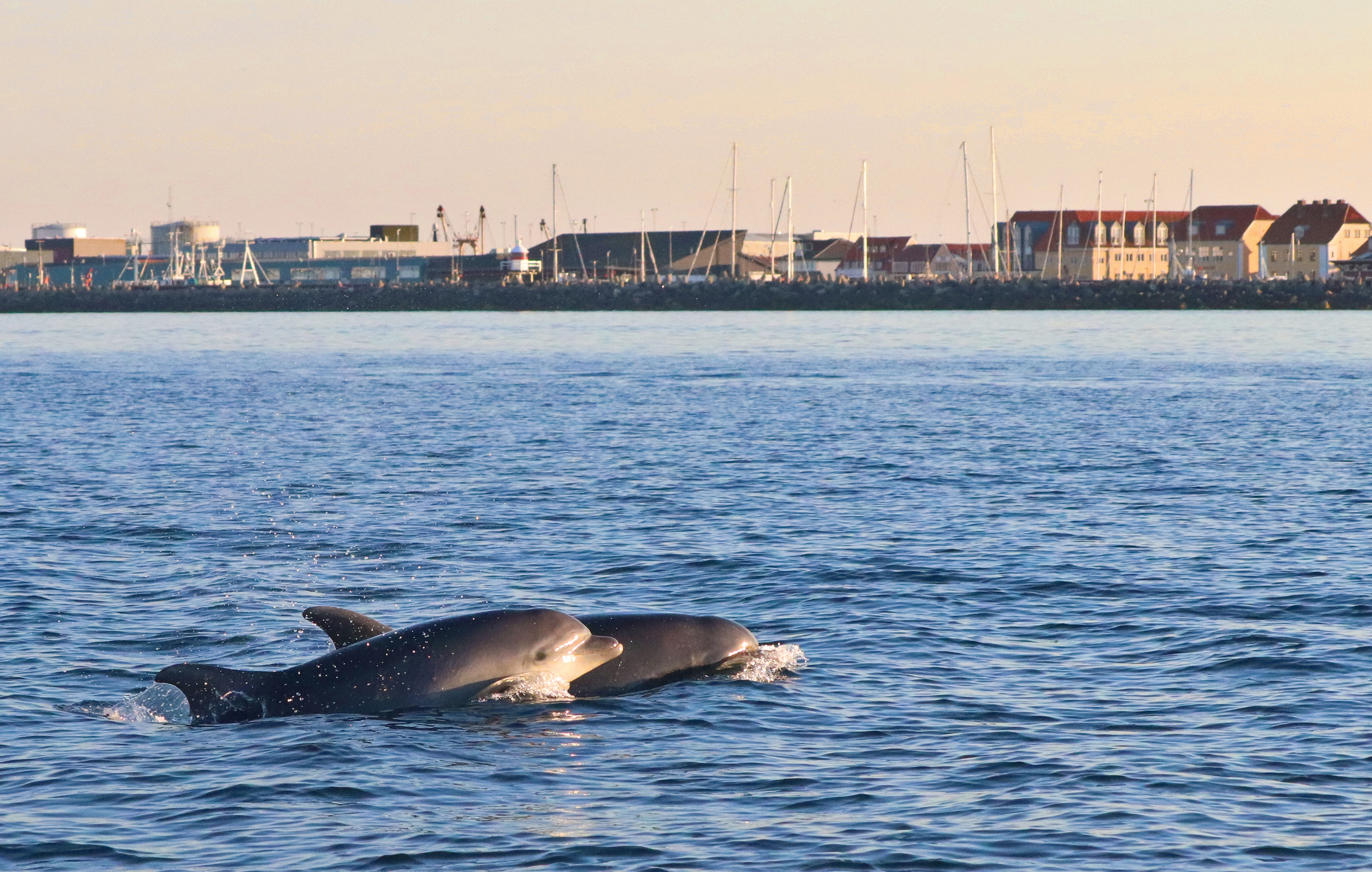 Det er tre år siden, at en lille flok delfiner (af arten øresvin – den anden delfin i vores farvande, hvidnæsen, holder sig ude på åbent hav) forlod de skotske kyster og indfandt sig i Thyborøn Kanal. For tiden holder tre delfiner, to ældre hunner og den enes kalv, for tiden fast til i Limfjordens vestlige udmunding mod Nordsøen. En yngre han kommer og går efter at have været på langfart med den gamle førerhan.