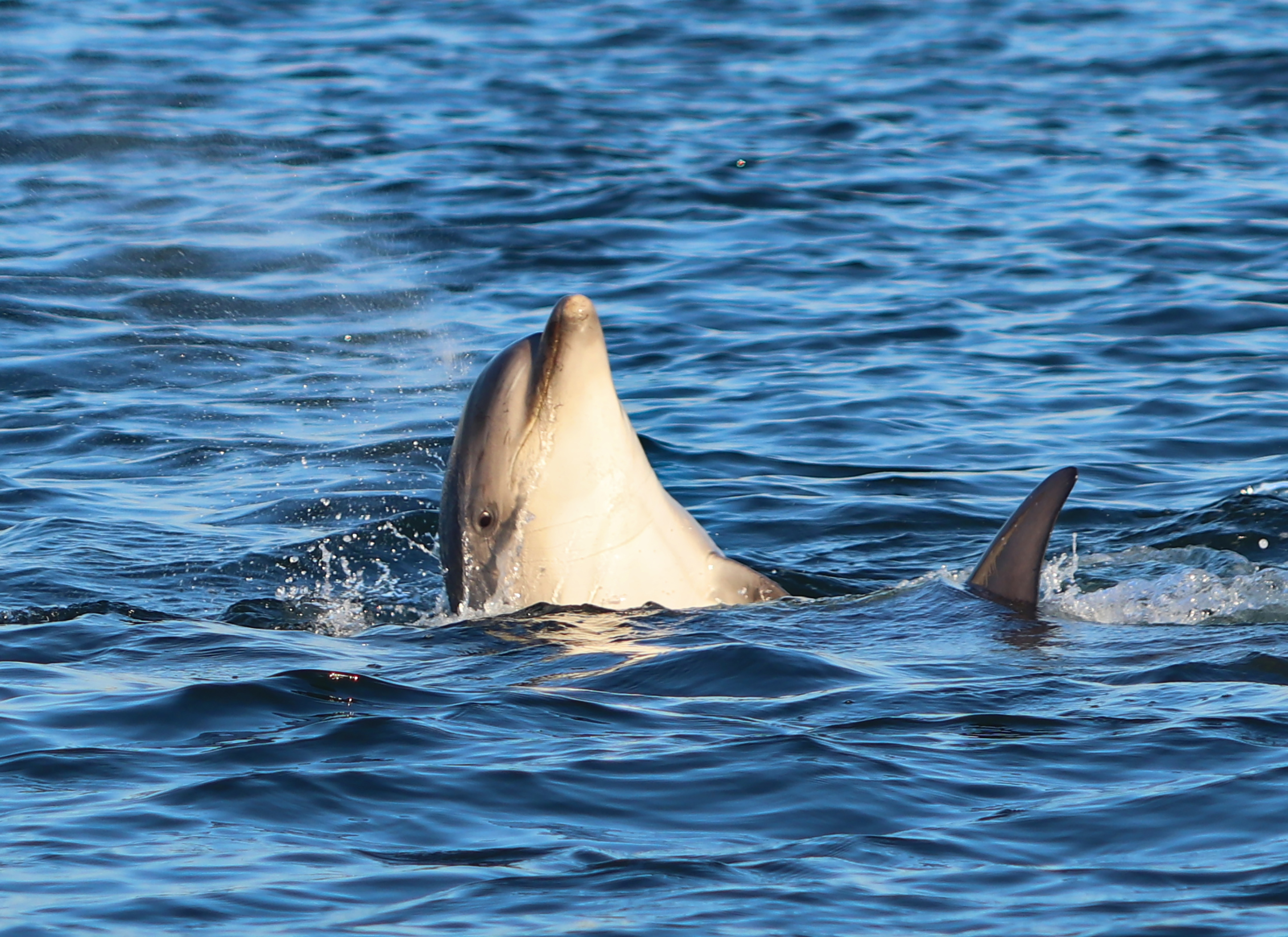 På næste tur er havet blåt og bølget. Vi skal næsten en sømil ud fra Agger Tange, inden den første lynhurtige rygfinne lader sig se over vandet.