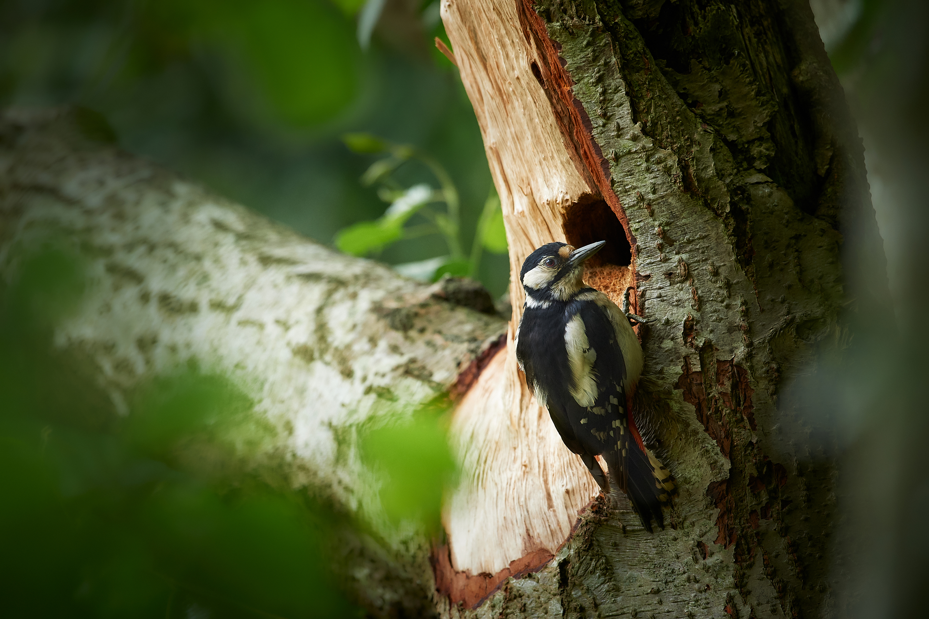 "Som regel hører man spætten først, enten på kaldet eller dens banken, og så kan den altså være småirriterende at få øje på oppe mellem løvet", fortæller Kristian Tikjøb Olsen.
