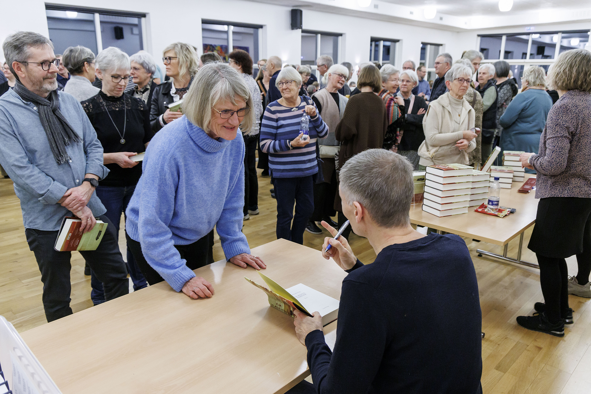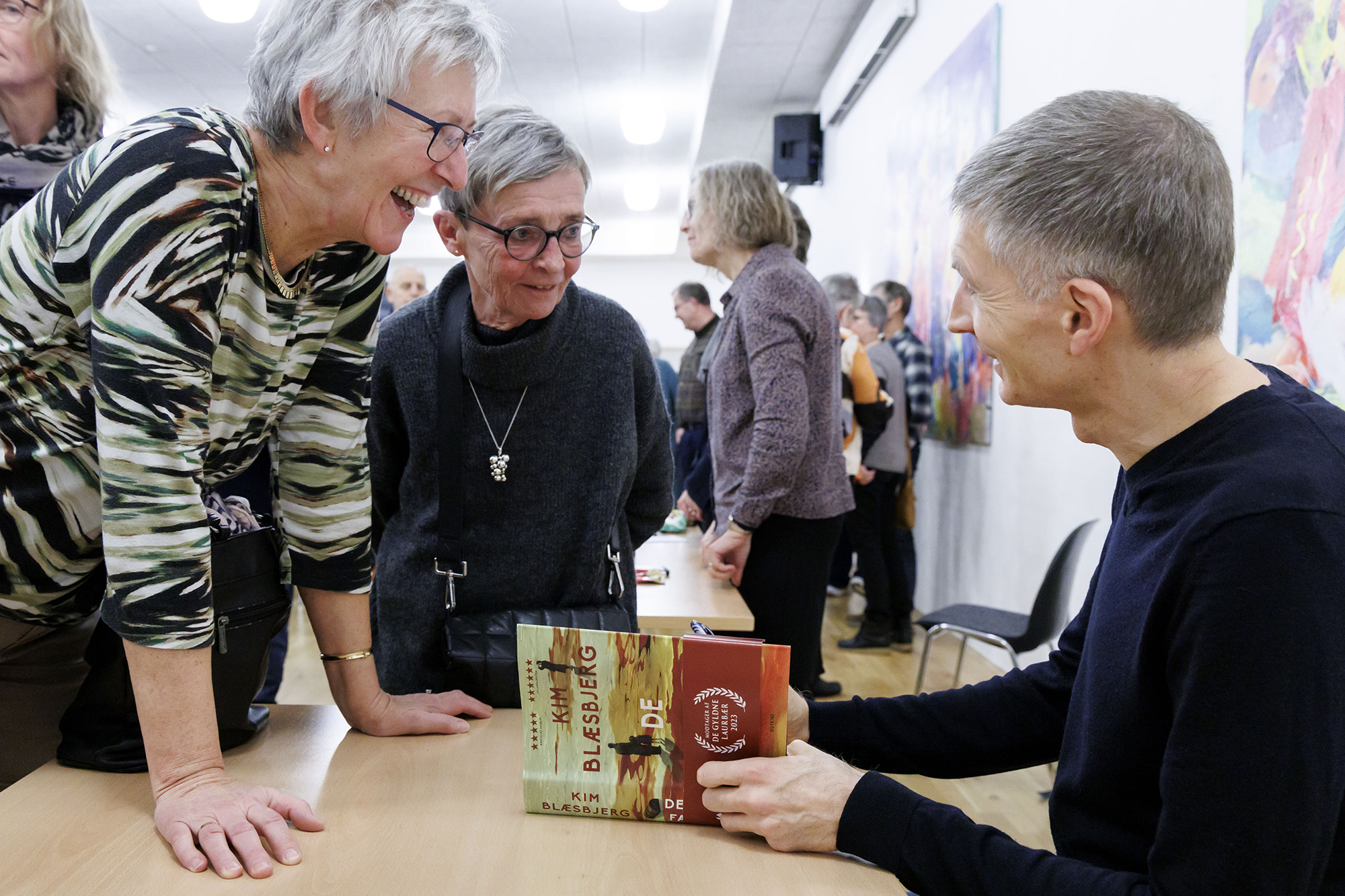 Denne aften i Klinkby er omsætning heller ikke det vigtigste for dem. Det er at være til stede og følge romanen og Kim Blæsbjerg ude på hjemmebane. Og for at tilbringe endnu et par timer i selskab med forfatteren og bogens karakterer Margrethe og Niels, Karin og Jørn, som er gået under huden på både Mariann Ardal og Vivi Juhl.