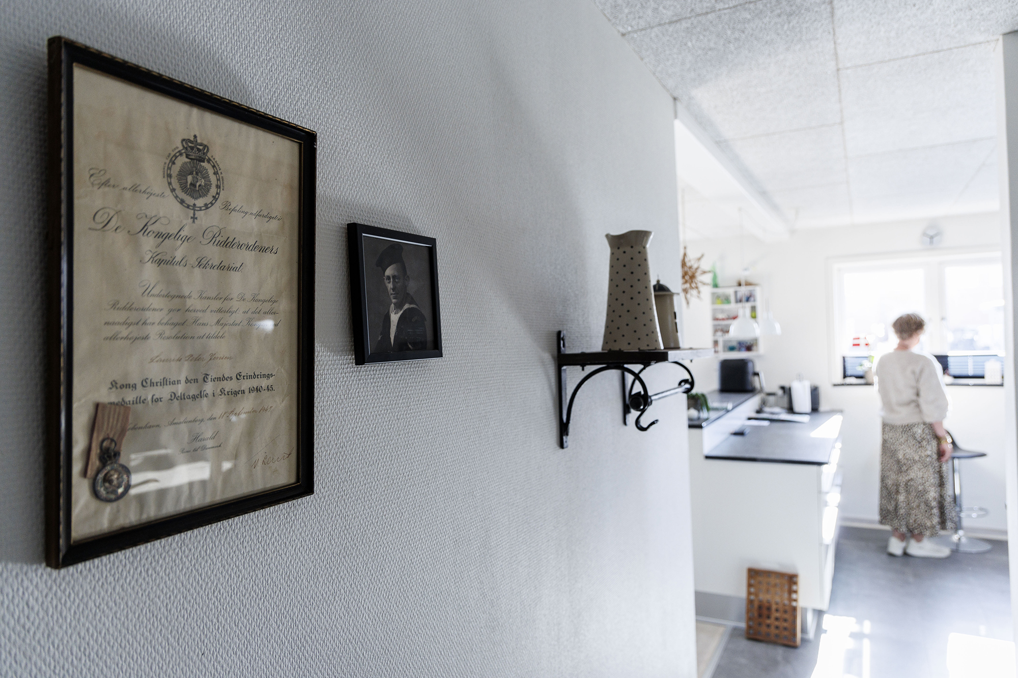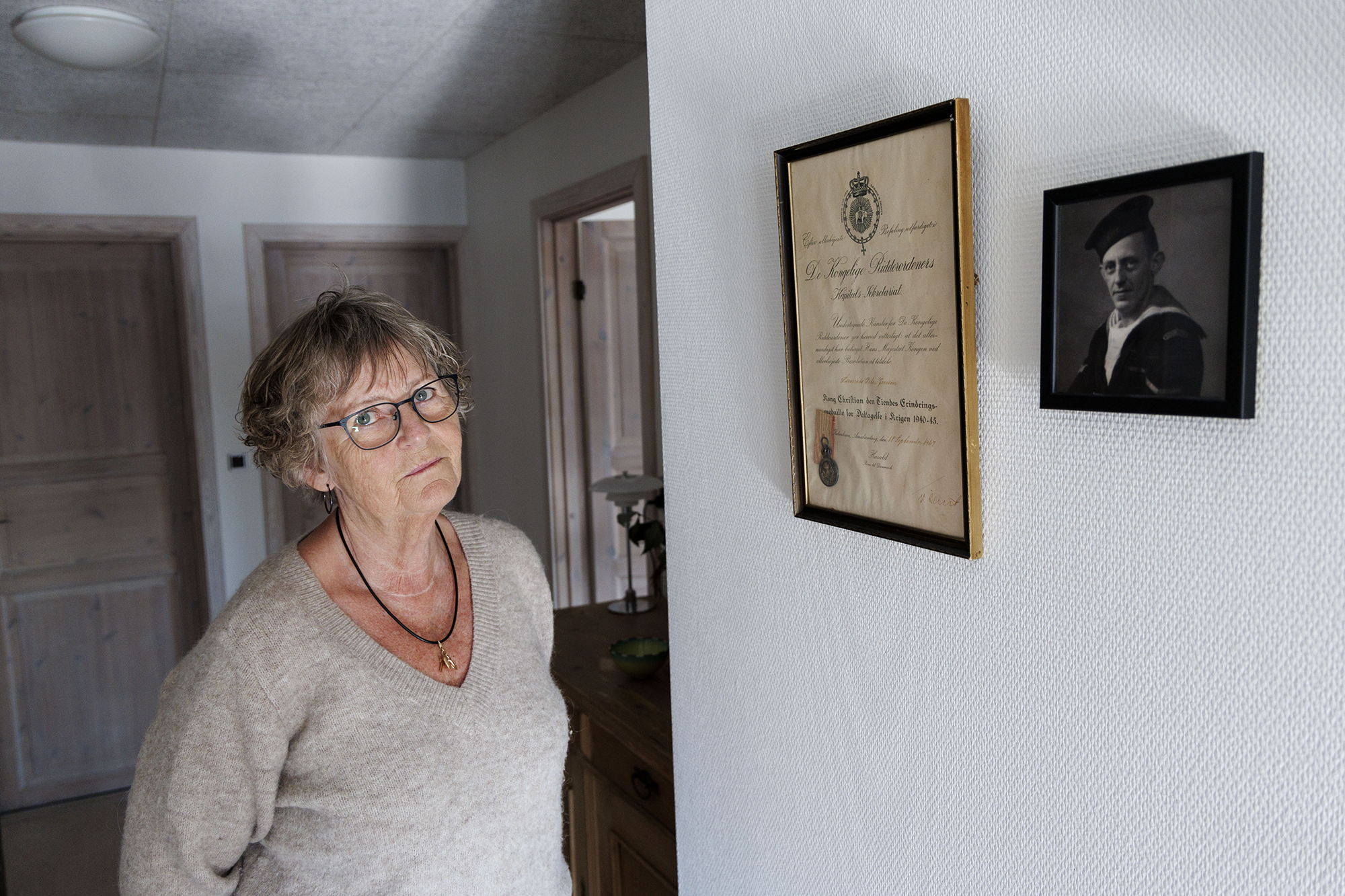 Det bliver tydeligt, når man træder ind ad hoveddøren i hendes hus ikke langt fra stranden: Det første man ser på væggen, er en stor billedramme med ”Kong Christian X’s Erindringsmedalje for Deltagelse i Krigen 1940-45.”
