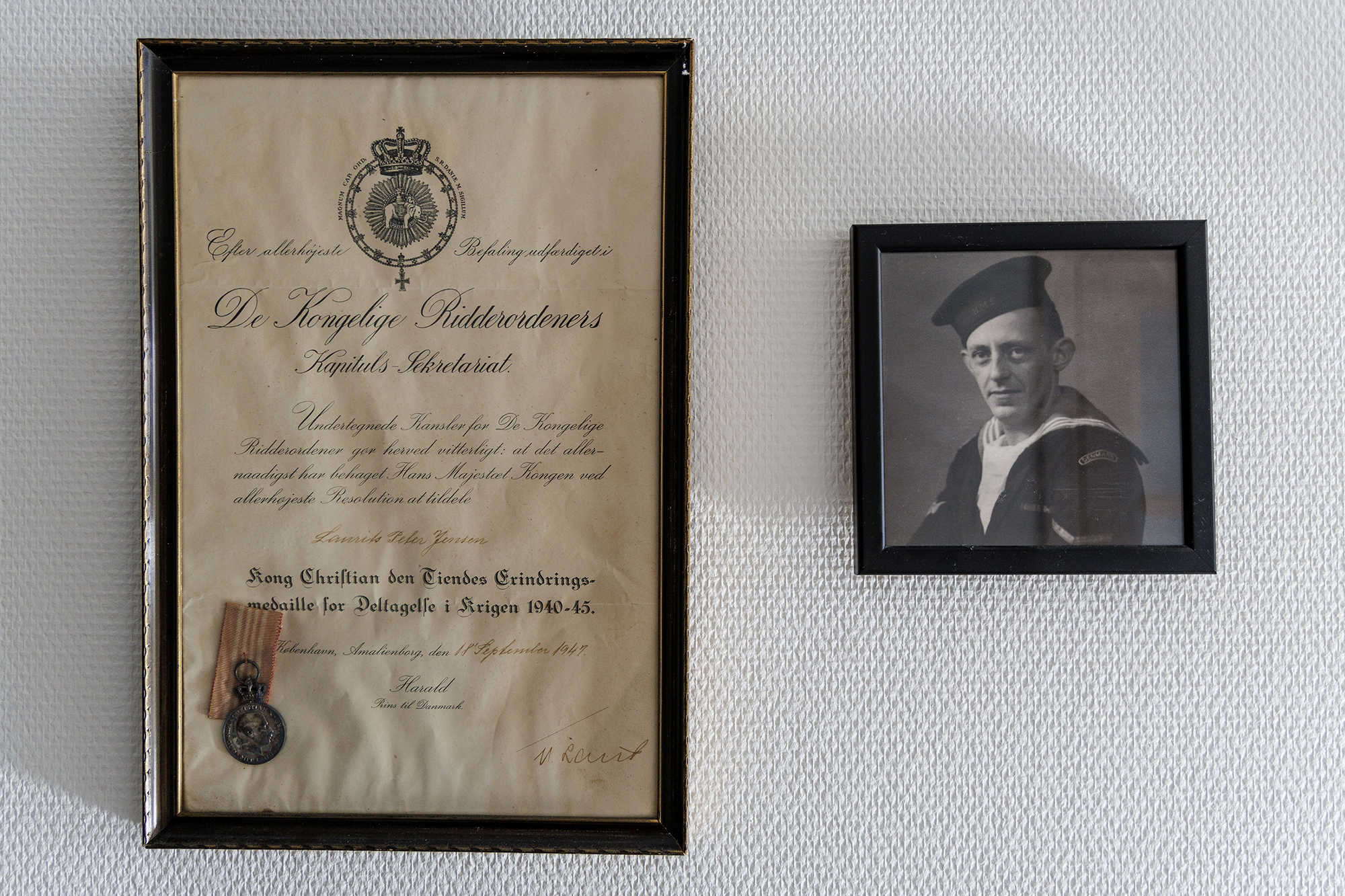 I dag bor Laurids Jensens datter Annalis Jensen altså stadig i Thyborøn – tæt på det sted, hvor hun voksede op med sin far. Hun blev selv født ni år efter krigen, i 1954, men alligevel fylder krigen stadig så meget, at hun har billedet af sin far hængende ved siden af kongens medalje.