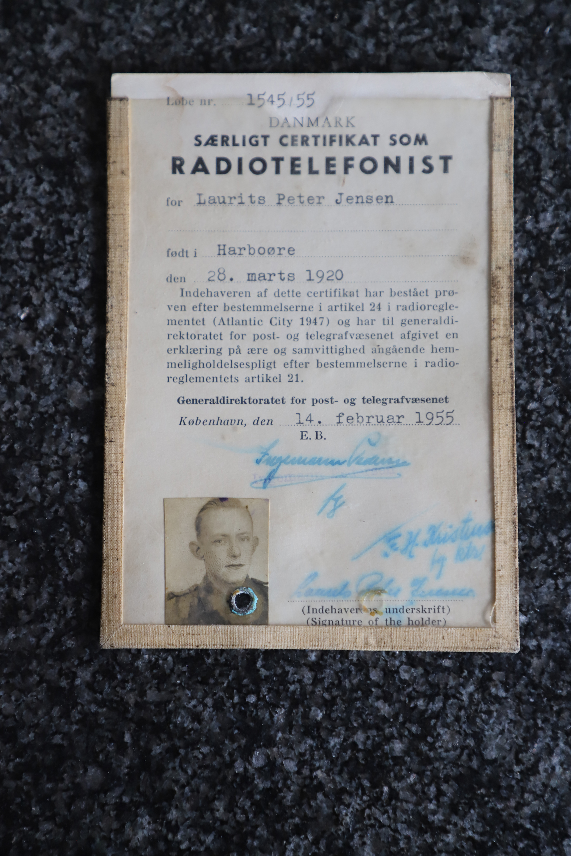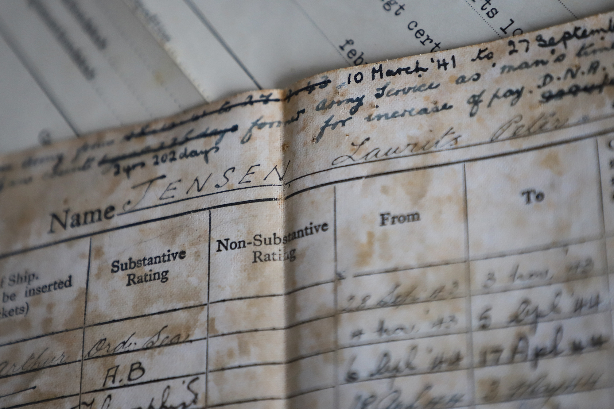 På køkkenbordet i huset hos Annalis i Thyborøn, har hun linet sin fars krigsdokumenter op, og her ligger der blandt andet papirer på, at Laurids Jensen efter krigen fik en dansk godkendelse af telegrafistuddannelsen. Den bedrift er Annalis Jensen tydeligvis stolt af.