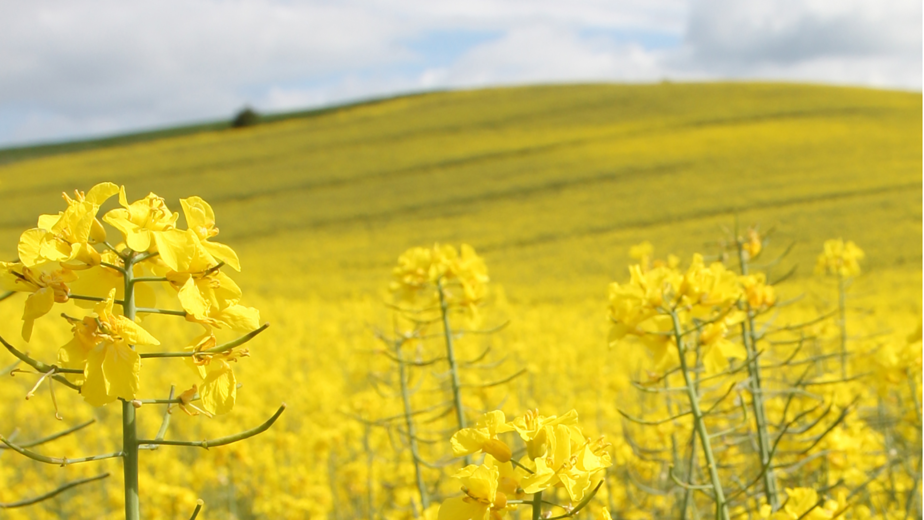 mens rapsmarker lyser solskins gult