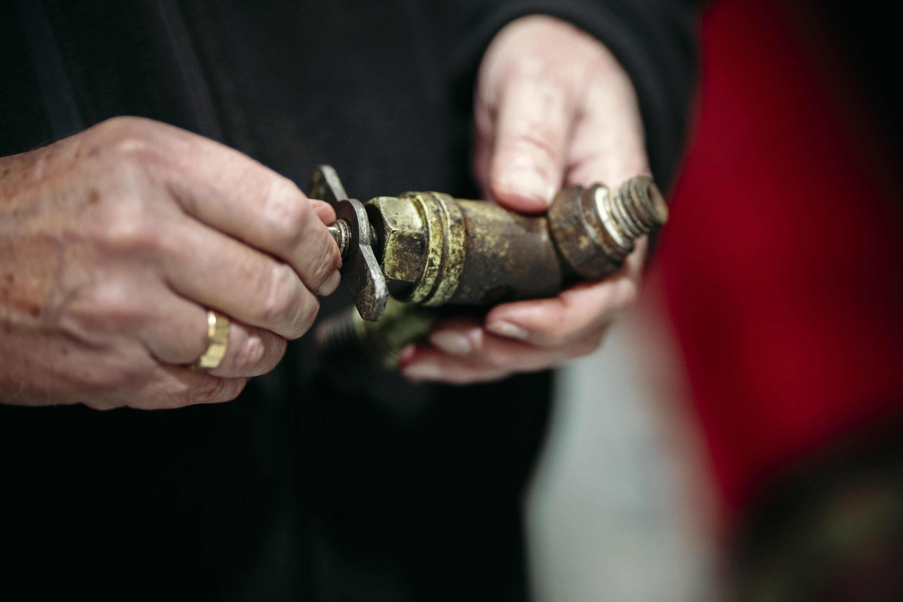 Mændene går i gang med skruenøgler, sandpapir, bolte og møtrikker, og adspurgt, om kvinder også er velkomne, fortæller Søren, at der muligvis er en motorkyndig pige på vej som frivillig inden længe.