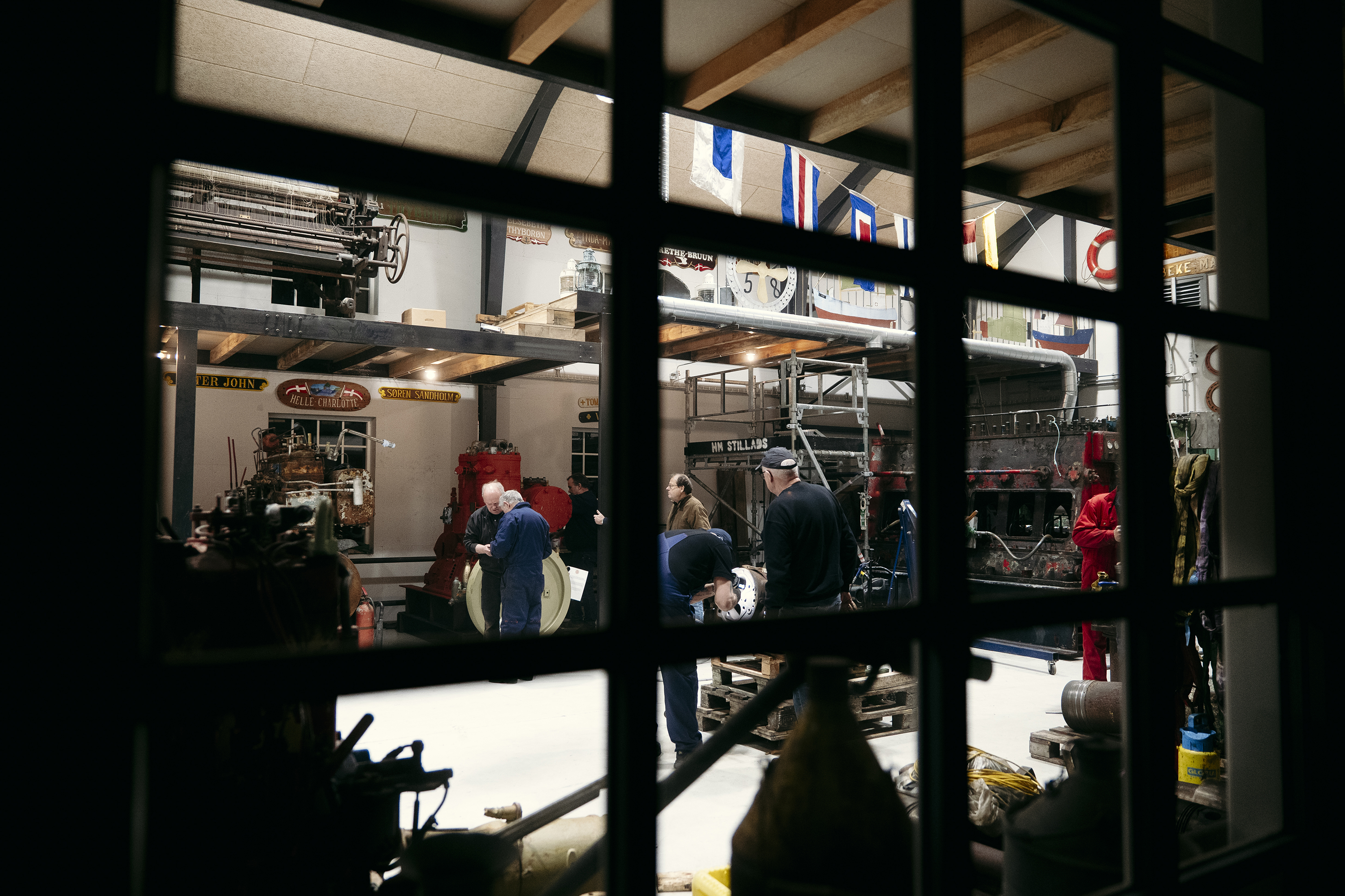 Henrik Kvist er den først ankomne, og han har sat kaffen over i det hyggelige rum, som er indrettet til kaffestue, og også huser Thyborøn Marineforening. Han er kasserer i ”Æ’ Motorrum”, og til daglig er han lods, og er en af de eneste, som ikke har haft fingrene i maskinen i bogstaveligste forstand. Men han har lært meget ved at gå sammen med de andre frivillige. De fleste af dem er pensionerede smede eller skibsmontører, og mange bor i Thyborøn eller Lemvig. Et par unge mænd på 20 år kommer kørende helt fra Viborg, og Henrik, som er opvokset i Lemvig, tager turen fra Horsens, hvor han bor nu.
