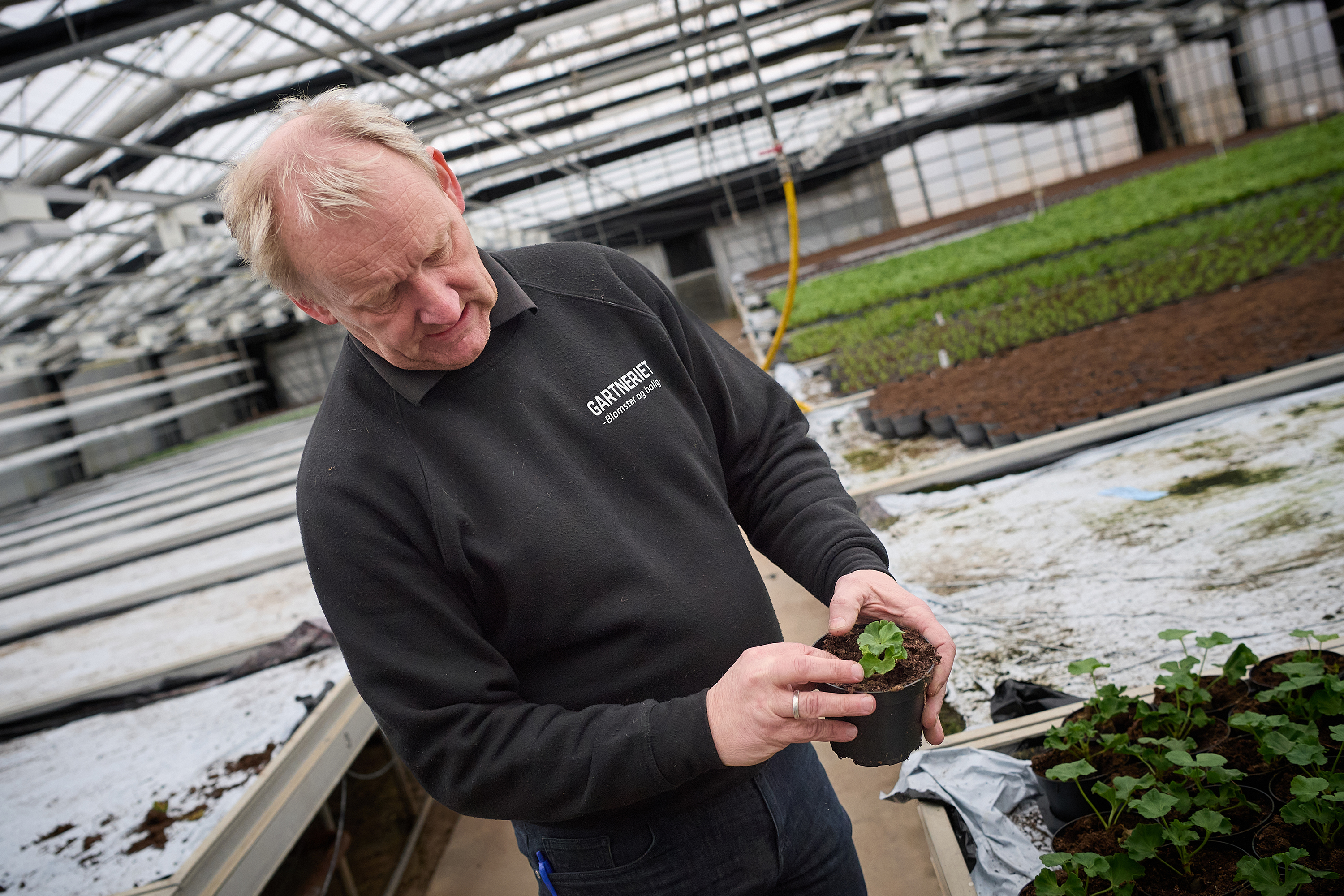 ”Her prioriterer vi så vidt muligt at købe fra andre danske gartnerier. Vi kan godt vælge varer fra, hvis vi ikke kan få dem fra Danmark”, siger Tommy Bomholdt Gay.