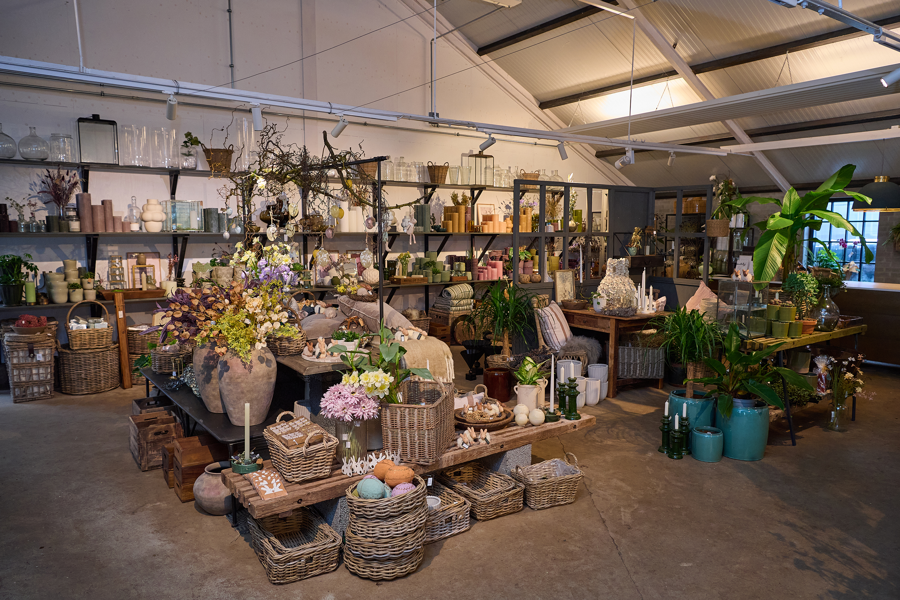 Er det ikke en buket, man er ude efter, er der nok andet at gå på opdagelse i. De grønne planter fylder butikkens mange hylder i samspil med bløde plaider, tykke puder, stearinlys, kurve, vaser, lamper, stole og andet interiør på en næsten hjemlig måde. Og det er meningen.