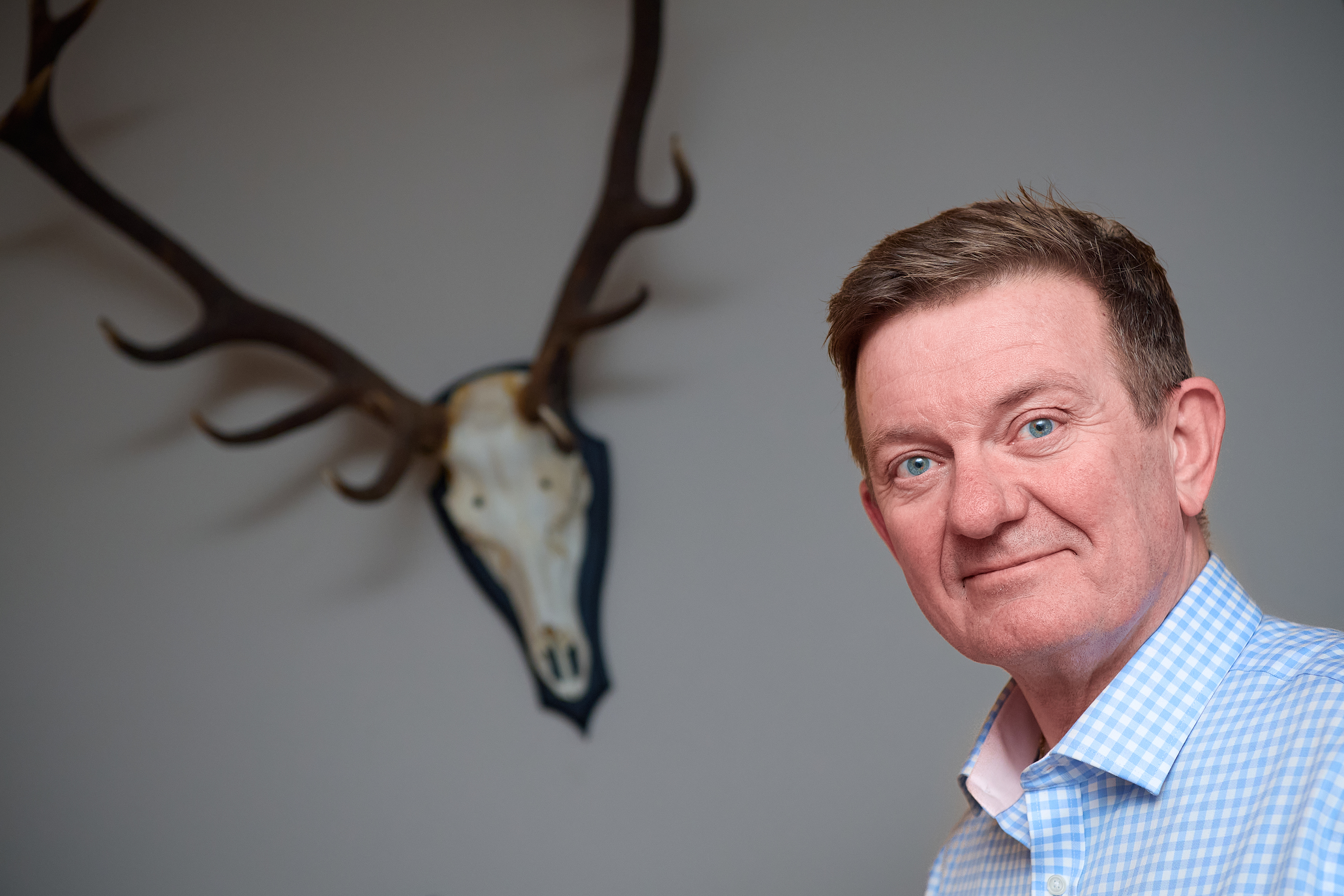 Hjemme tager hustru Lenette og den glade labrador Stella imod, og der går ikke to minutter, så er det grønne slips taget af halsen, og den pæne jakke skiftet ud med en praktisk. Den lille flok kreaturer, der græsser ikke langt fra det canadiske træhus skal fodres. Flokken udgør nærmeste naboer sammen med hjortevildtet, der også boltrer sig på ejendommens knap 16 hektar.